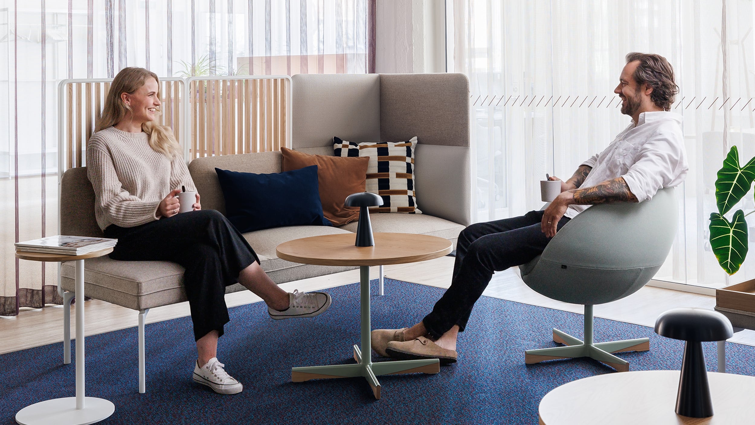 Showroomillamme pääset kokemaan erilaisia tilaratkaisuja, materiaaleja ja kalustekokonaisuuksia käytännössä. Tutustu tilaesimerkkeihin, jotka yhdistävät toiminnallisuuden, visuaalisuuden ja mukavuuden. Voit samalla keskustella asiantuntijoidemme kanssa siitä, miten voimme tuoda samanlaisen tunnelman omaan toimitilaasi.